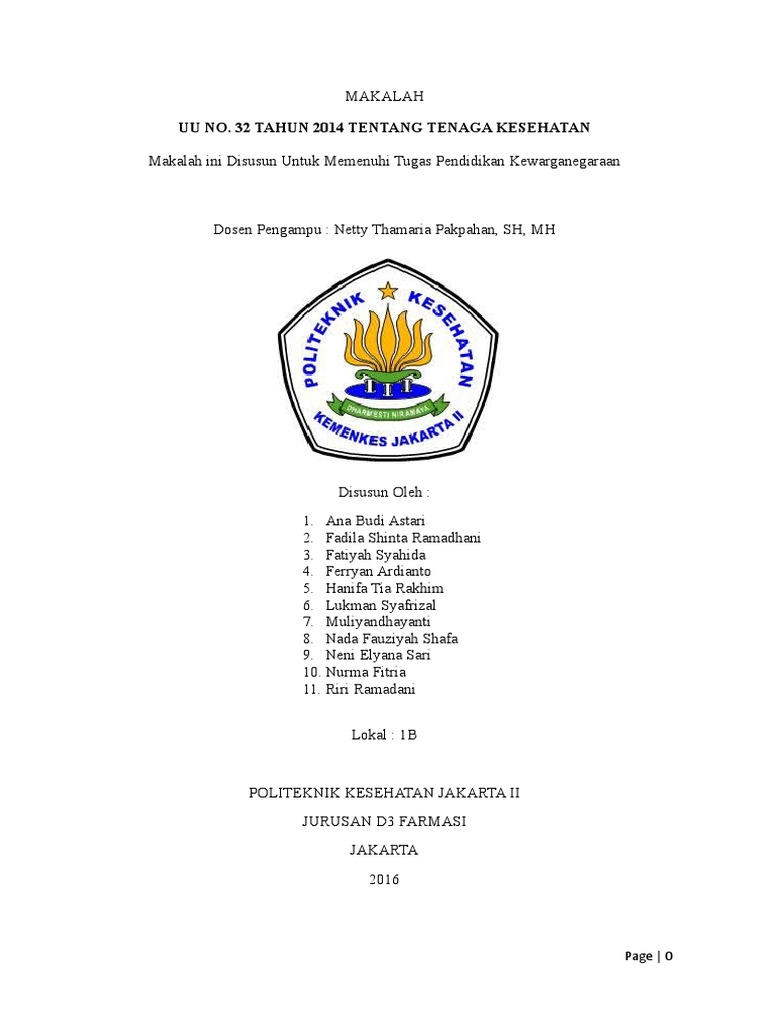 Makalah uu no 36 tahun 2014 tentang tenaga kesehatan. By dr kamal amiruddin mars. Dengan membaca pembahasan makalah ini mahasiswa dapat mengetahui isi dsari undang undang republik indonesia nomor 36 tahun 2014. Pasal 22 1 tenaga kesehatan harus memiliki kualifikasi minimum.