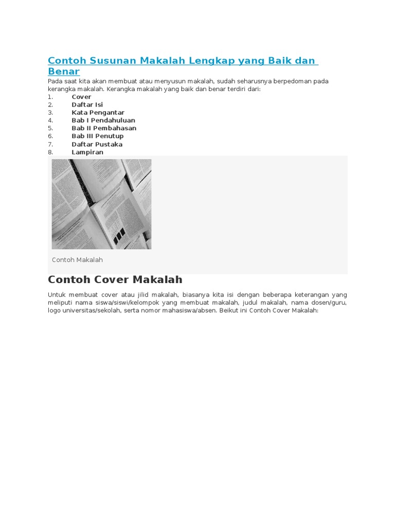 Susunan makalah yang baik dan benar. Meski sumber informasi tentang makalah sudah banyak bahkan bisa didapatkan dengan mudah tetapi masih banyak yang belum mengetahui susunan makalah yang baik. Namun agar mendapatkan gambaran yang lebih mendetail informasi yang akan disampaikan pada kesempatan ini tidak ada salahnya untuk disimak. Demikian pembahasan tentang contoh susunan makalah lengkap yang baik dan benar mudah mudahan bisa membantu dan bermanfaat bagi anda yang sedang menyusun makalah untuk kegiatan pembelajaran di sekolah perguruan tinggi ataupun di mana saja anda menuntut ilmu.