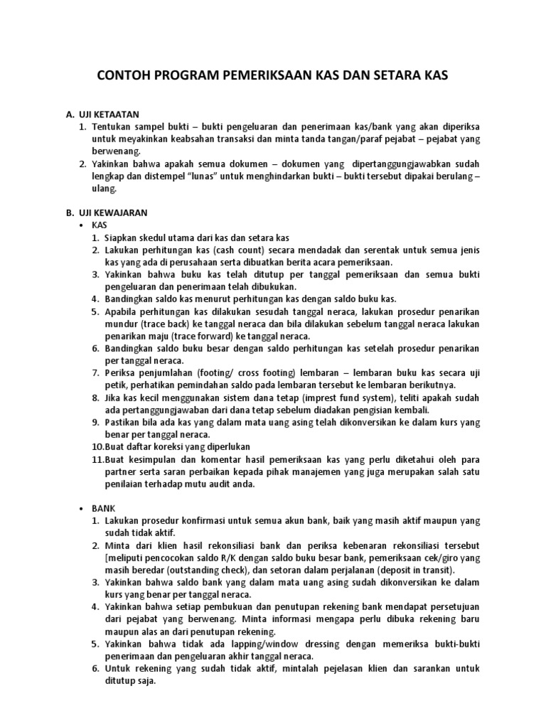 Contoh Program Pemeriksaan Kas Dan Setara Kas